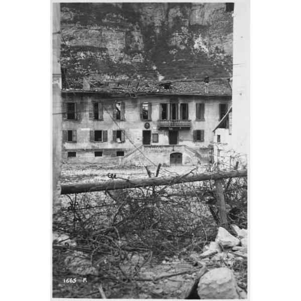 Veneto - Carpanè - piazze - municipi - edifici - macerie - rovine - reticolati - filo spinato - 1918 (positivo)
