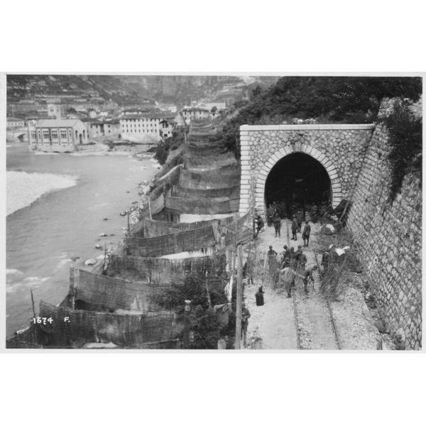 Marzocchi, Luigi; Marzocchi, Luigi, Veneto - Valstagna - Brenta - mascheramenti - strade - gallerie - tunnel - ferrovie - binari - 1918 (positivo)