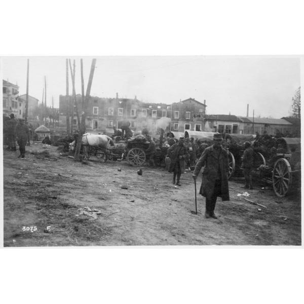 Cervignano - Salmerie - Carri - Soldati - Edifici - 1918 (positivo)