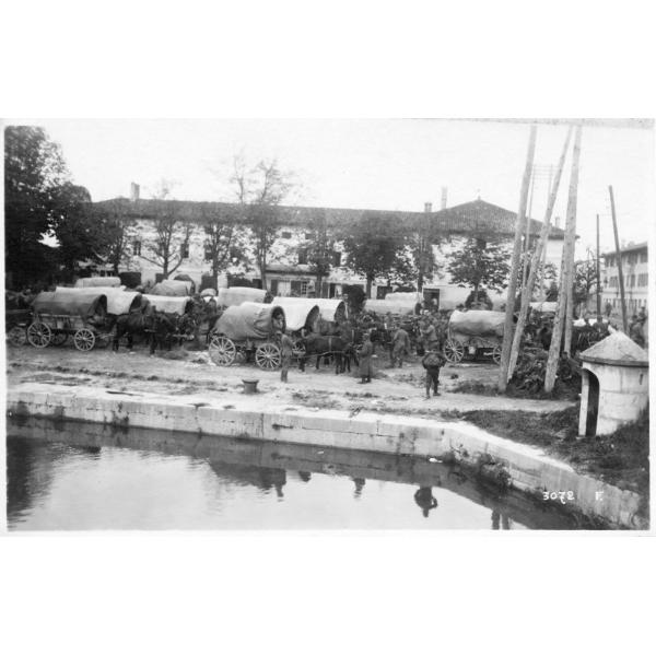 Cervignano - Salmerie - Soldati austriaci - Carri - 1918 (positivo)