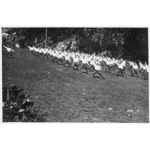 Veneto - monte Baldo - brigata ceco-slovacca - soldati - esercitazioni - esercizi ginnici - ginnastica - 1918 (positivo)