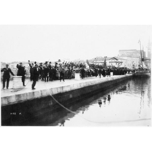 Capodistria Civili - Soldati - Bandiere - 1918, Capo d'Istria./ La popolazione attende gli Italiani