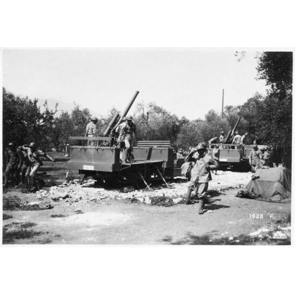 Veneto - Malcesine - batterie antiaeree - artiglieria - pezzi di artiglieria - regia marina - automezzi - autocarri - 1918 (positivo)