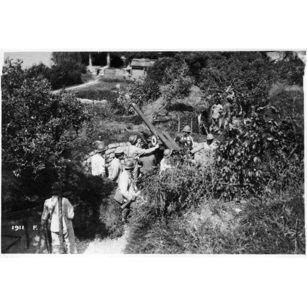 Veneto - Malcesine - batterie antiaeree - cannoni - regia marina - artiglieria - pezzi di artiglieria - trincee - mascheramenti - 1918, Veneto, Malcesine, batterie antiaeree della regia marina appostati in trincee e mascherati
