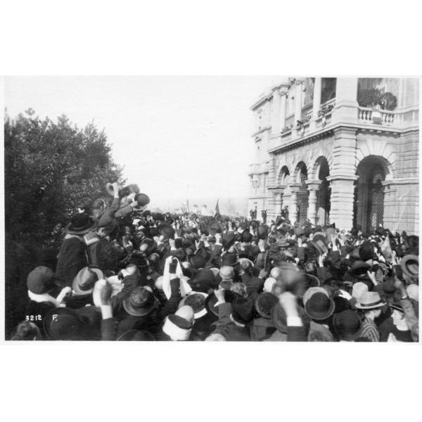 Trieste - Palazzo del governatore - Folla - Civili - Festeggiamenti - 1918 (positivo)