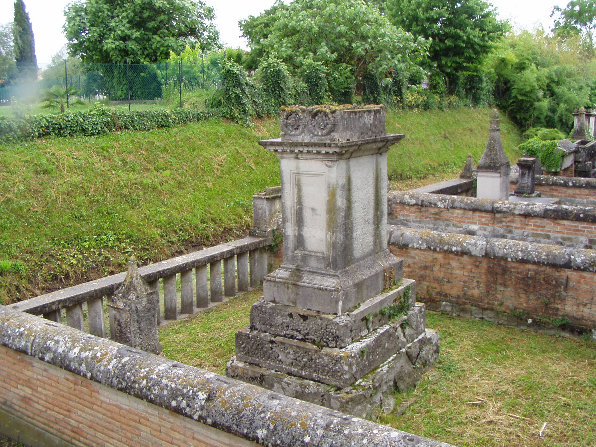 balaustra anteriore di recinzione a pilastrini con are agli angoli; al centro ricca ara decorata
