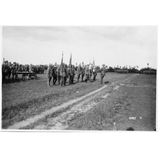 Veneto - Trevignano - Falzè - premiazioni - cerimonie - onorificenze - bandiere - 60° divisione - 22° corpo d'armata - generali - Vaccari - 1918 (positivo)