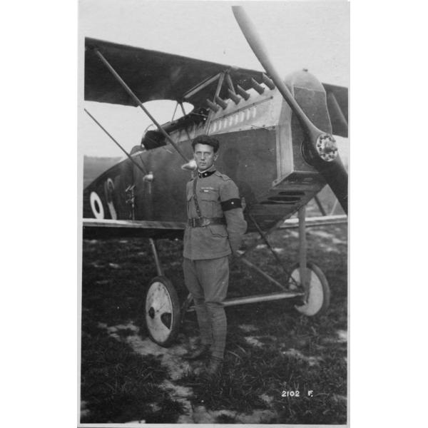 Veneto - Due Carrare - San Pelagio - campi di aviazione - velivoli - aerei - S.V.A. - squadriglie - Serenissima - Raid su Vienna - piloti - aviatori - Locatelli - 1918, Veneto, campo di aviazione di San Pelagio, comune di Due Carrare, il tenente Antonio Locatelli davanti al suo velivolo