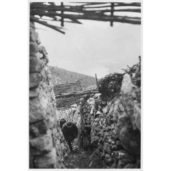 Camminamenti - mascheramenti - 1918, Un soldato si muove lungo i camminamenti mascherati