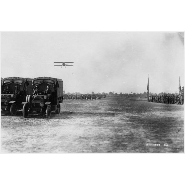 Festeggiamenti - feste - terza armata - automobilisti - sfilata - automezzi - autocarri - aerei - 1918, Sfilata di automezzi e aerei alla festa degli automobilisti della Terza Armata