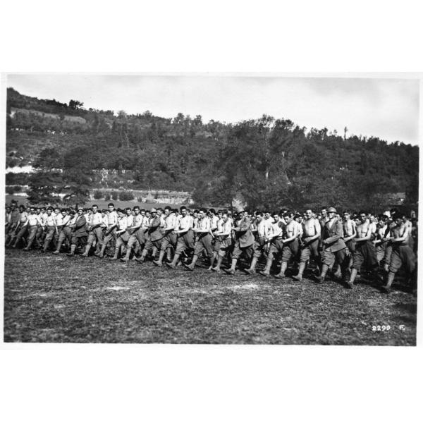 Veneto - festeggiamenti - premiazioni - onorificenze - sfilata - arditi - 1918, Veneto, la sfilata degli arditi alla presenza di S.M. re Vittorio Emanuele III e del generale Francesco Saverio Grazioli in occasione dei festeggiamenti e delle premiazioni del corpo d'armata degli arditi