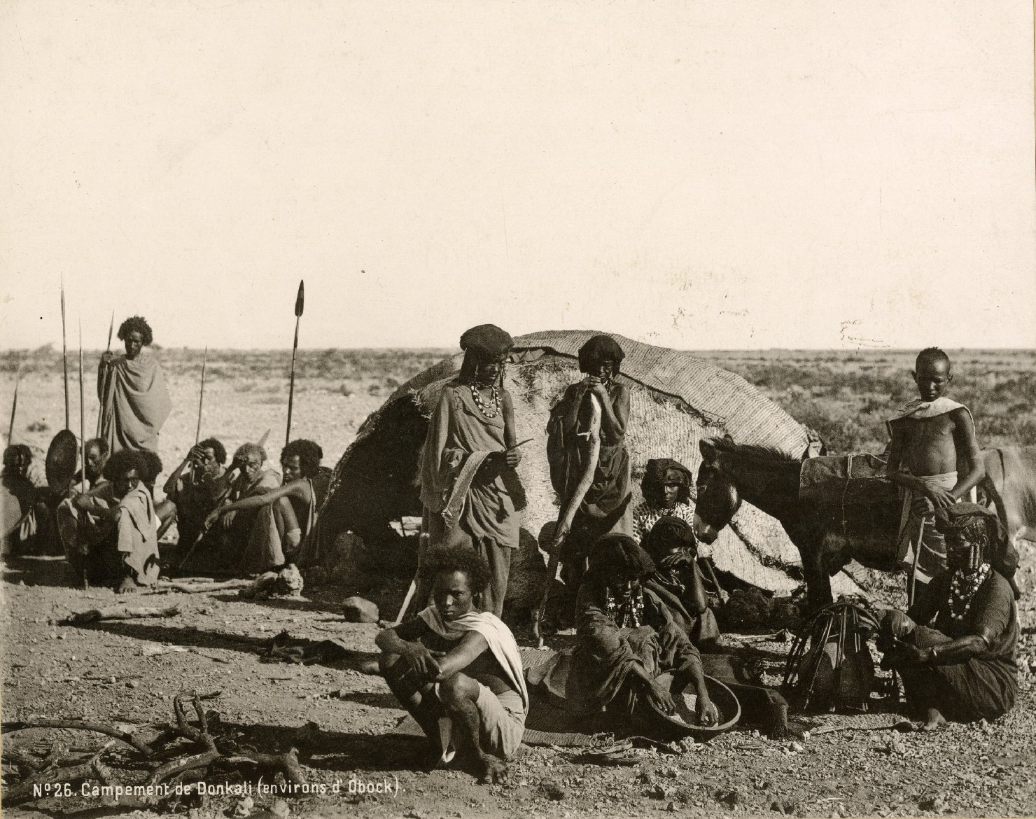 Ritratti fotografici - Indigeni - Popoli - Corno d'Africa - Afar - Danakil, Accampamento di indigeni Danakil nella regione di Obock