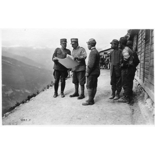 Trentino-Alto Adige - Val Lagarina - Malga Zugna - baracche - montagna - generali - Barbarich - 1918, Trentino-Alto Adige, Val Lagarina, su Malga Zugna il generale Eugenio Barbarich controlla documenti