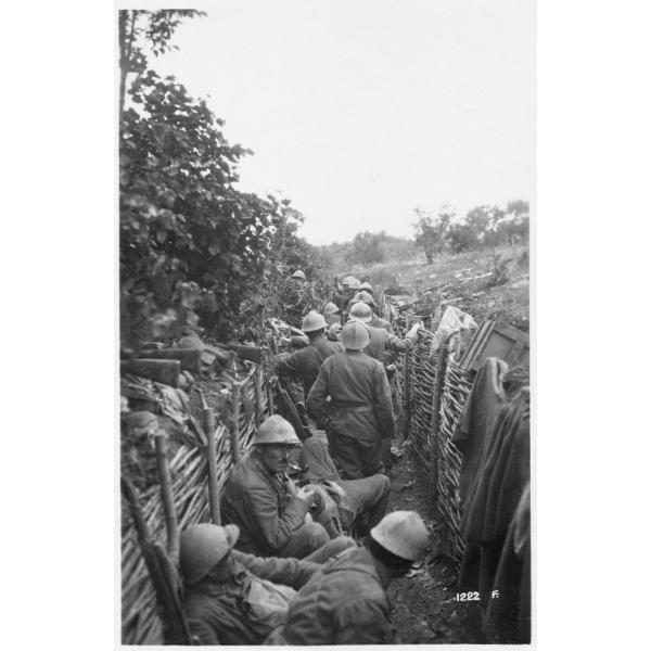 Giavera del Montello - soldati italiani - osservazione - trincee - 1918, Giavera del Montello, soldati in un momento di riposo in trincea