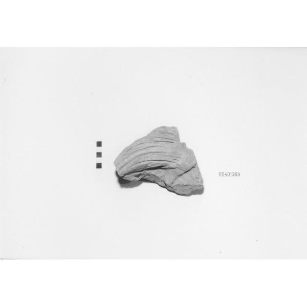 Gocciolatoio in argilla beige, dura, liscia, con molti inclusi di mica, neri.. Frammento di protome leonina. La ciocca di criniera, definita da nette fratture, presenta profondi ritocchi a stecca che creano effetti chiaroscurali