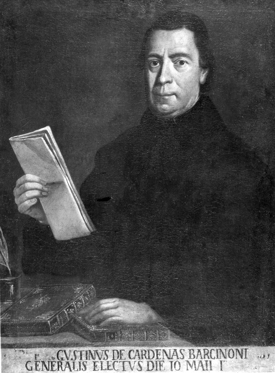 Soggetti profani. Ecclesiastici: reverendo Agostino di Cardena. Abbigliamento religioso: saio. Oggetti: libri; penna; calamaio; foglio