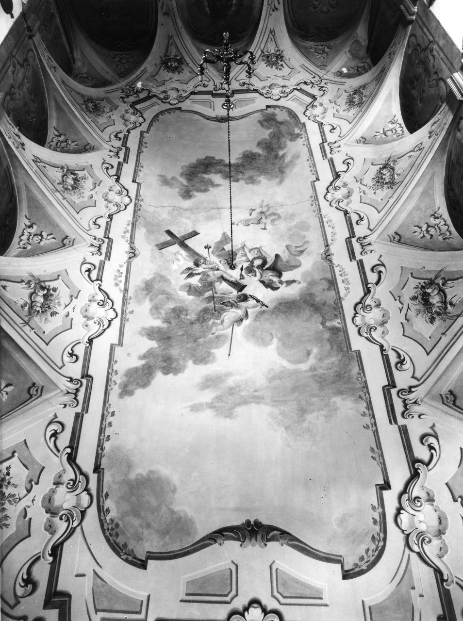 n.p.. Soggetti sacri. Figure: angeli. Simboli della passione: croce; veronica; corona di spine; flagello; chiodi; martello; canna; spugna; lancia. Decorazioni: ghirlande vegetali; volute; cartigli; mazzi di fiori; modanature