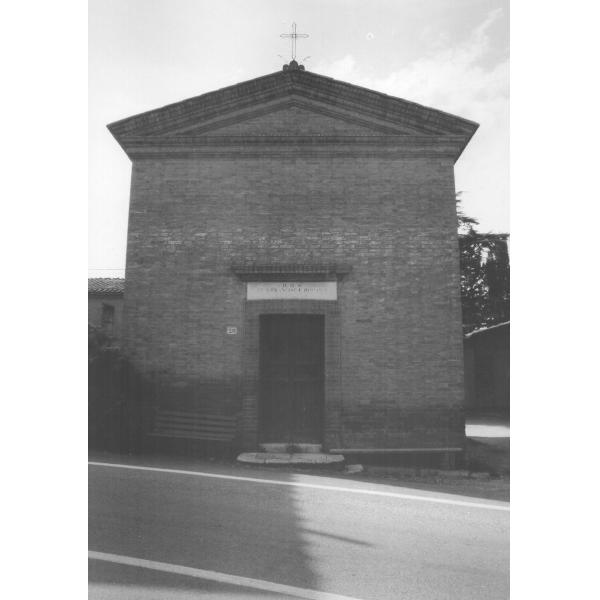 strutture verticali: parete (in muratura laterizio), intero bene; strutture di orizzontamento: solaio, intero bene; coperture: a tetto (), intero bene; elementi decorativi: altare, aula, interna; isrizioni, lapidi, stemmi: stemma; iscrizione (scolpita/o, marmo), prospetto principale