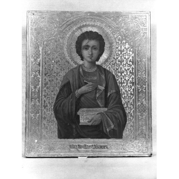 icona. Personaggi: San Panteleimon martire. Abbigliamento: tunica; mantello. Attributi: (San Panteleimon) cassetta dei medicamenti; bisturi