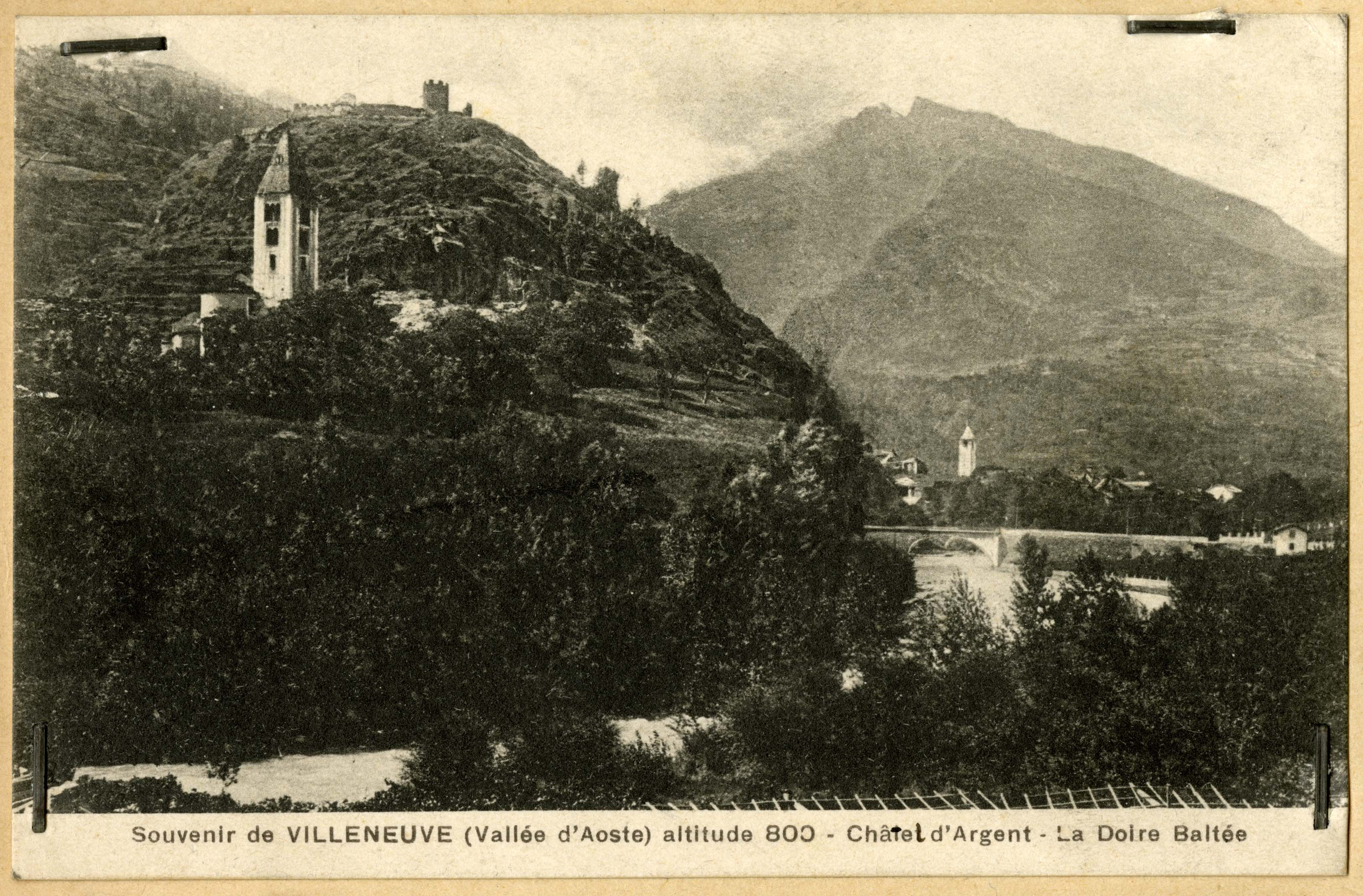 Valle d'Aosta - Architettura militare - Castelli; Villeneuve - Castello di Châtel-Argent; Villeneuve - Vedute; Villeneuve - Fiume Dora Baltea