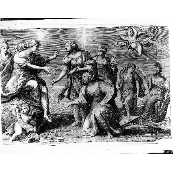 Personificazioni: Verità; Giustizia; Geometria; Astronomia; Grammatica. Figure: donne; putti alati