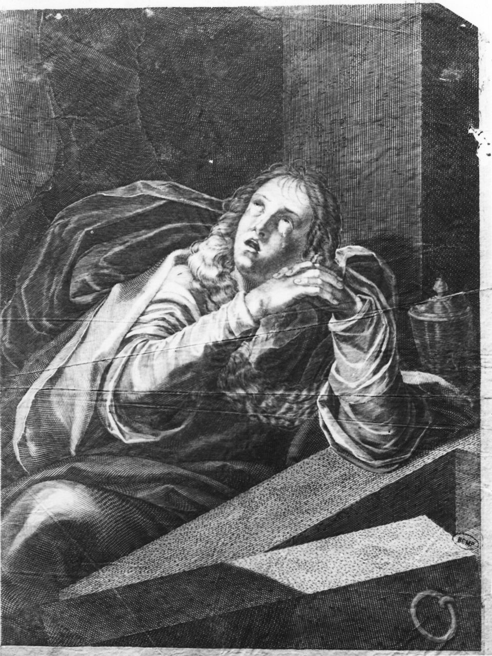 Personaggi: Santa Maria Maddalena. Attributi: (Santa Maria Maddalena) vaso unguenti. Elementi architettonici: sepolcro. Abbigliamento: all'antica