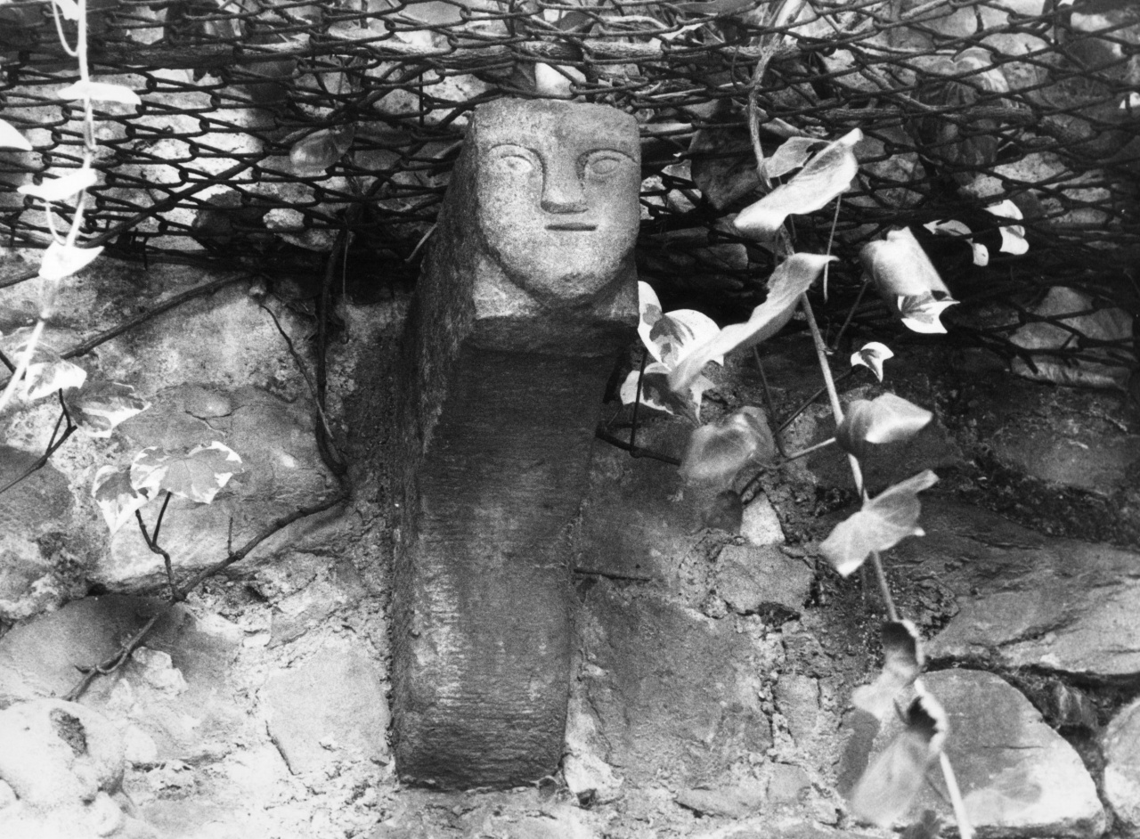 Mensola di arenaria che reca scolpita nella parte superiore una testina apotropaica. Presenta erosioni nella parte sinistra.. Figure maschili
