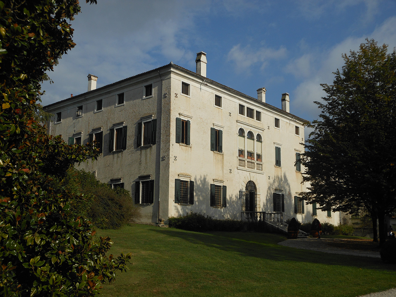 strutture verticali: parete (in muratura intonacato, ciottoli di fiume; mista pietrame e/o laterizi; laterizio), intero bene; strutture di orizzontamento: solaio (alla sansovina intero solaio travi con tavolato in legno), corpo principale; coperture: a tetto (a falde a padiglione), corpo principale; scale: scala (principale a due rampe, pietra), interna; pavimenti: alla veneziana p. t.; elementi decorativi: finestra; finestra; portale; portale; affresco (a trifora; a serliana; in bugnato; in bugnato; con fregio a ghirlande e puntini; a medaglioni raffiguranti paesaggi, pietra; pietra; pietra; pietra; pittura), prospetto Ovest; prospetto Est; prospetto Ovest; prospetto Est; sale interne, esterna; esterna; esterna; esterna; interna
