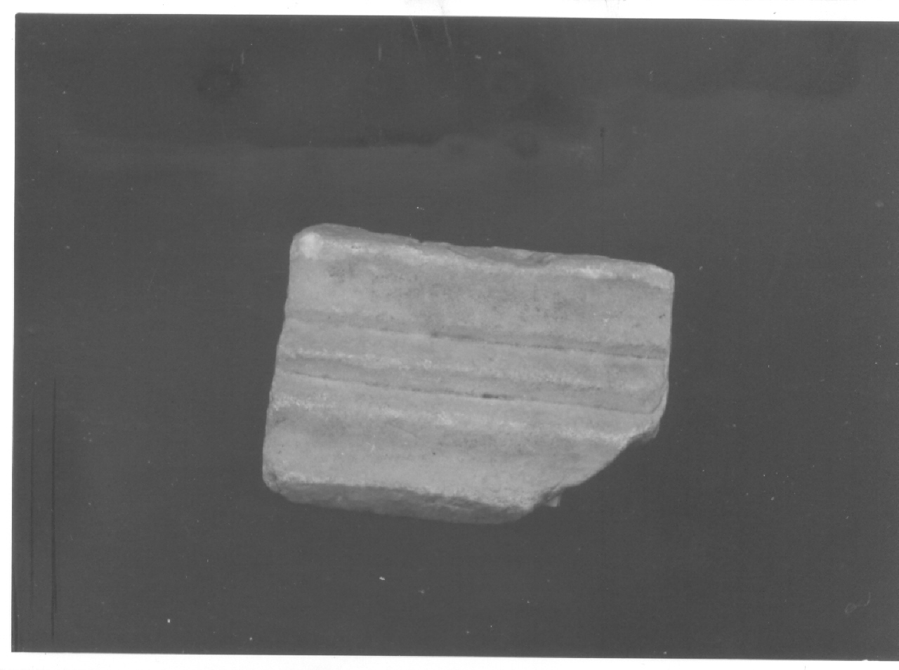 Piccola cornice rettilinea a modanature lisce; foro rotondo di limitate dimensioni nel piano inferiore.