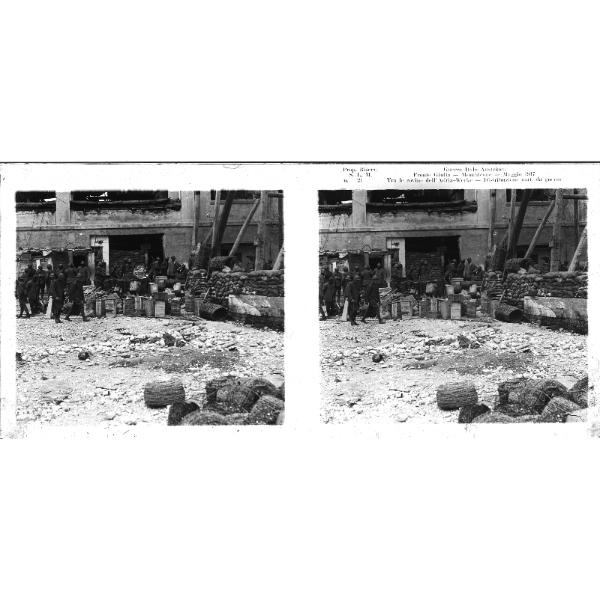 Friuli-Venezia Giulia - Monfalcone - Adria Werke - cantieri - rovine - materiali - filo spinato - sacchi di terra - munizioni - soldati - 1917