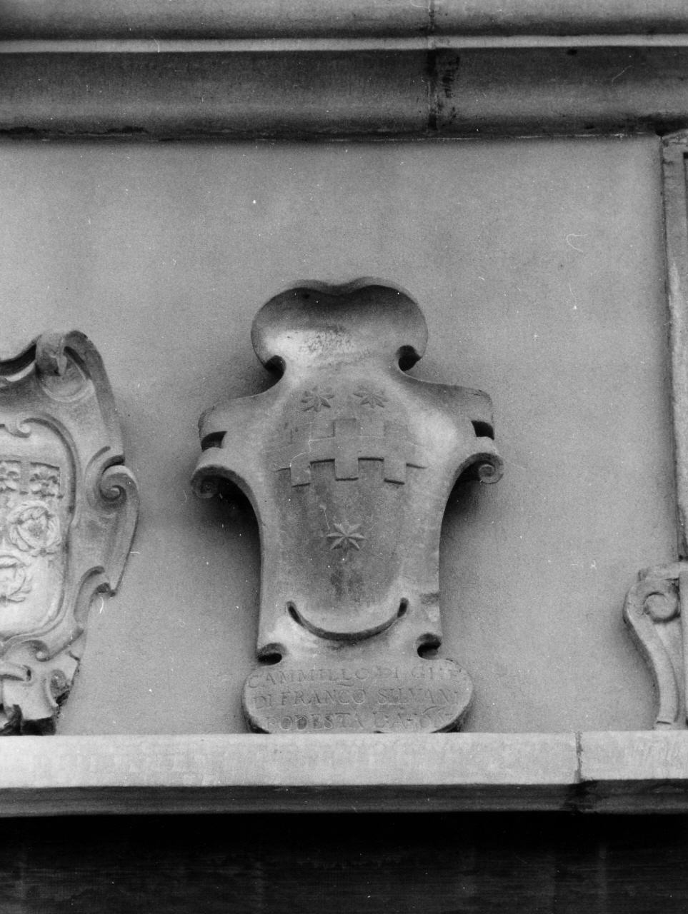 Scudo araldico con targa incisa.. Araldica: stemma di Camillo di Gherardo Silvani