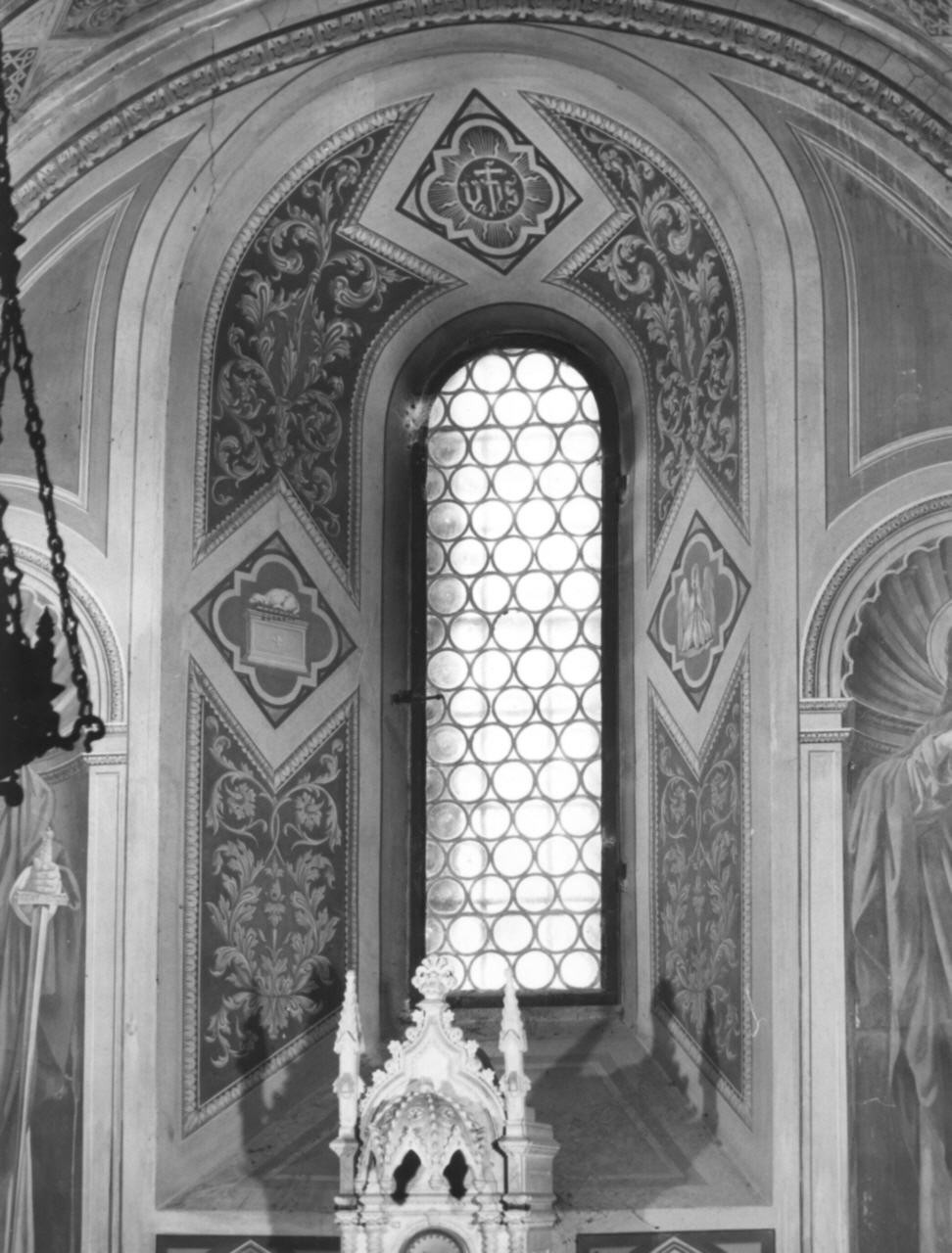 n.p.. Allegorie-simboli: monogramma bernardiniano. Allegorie-simboli: (simbolo eucaristico) pellicano. Allegorie-simboli: agnello apocalittico. Decorazioni: motivi fogliacei; decorazioni romboidali