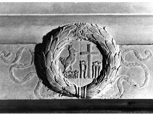 emblemi della Compagnia del Bigallo e della Campagnia della Misericordia, ghirlanda di foglie d'alloro e fiori (rilievo)