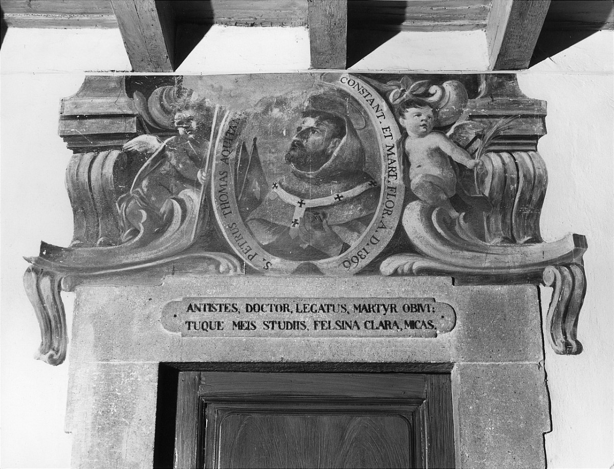 n.p.. Personaggi: San Pietro Tommaso Aquitano. Abbigliamento religioso: abito carmelitano. Oggetti: medaglione con simbolo mariano. Architetture: mensole. Figure: cherubini