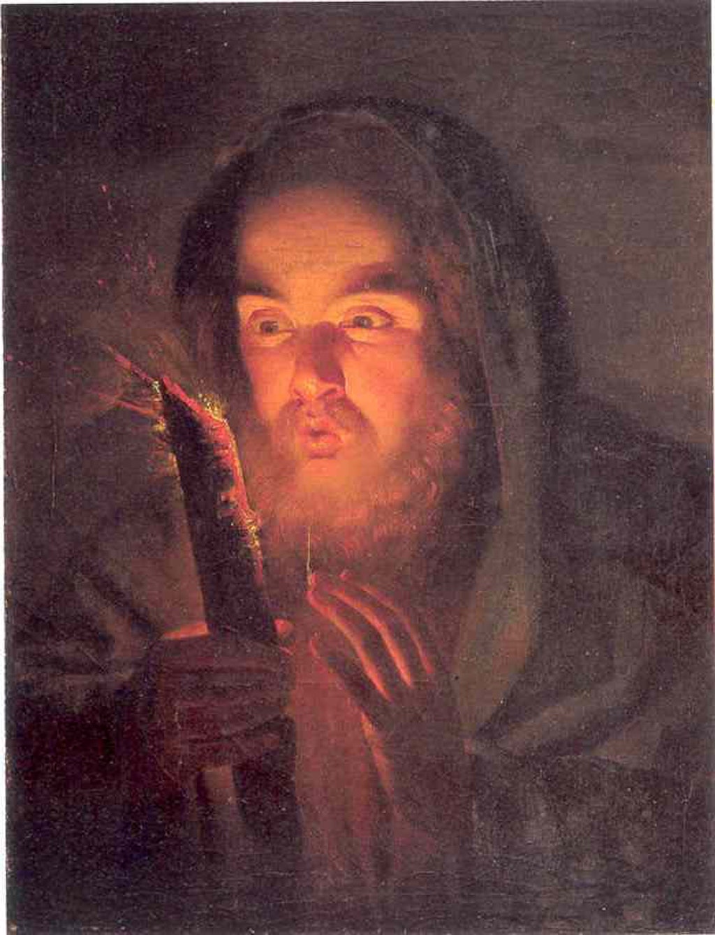 dipinto ad olio su tela. Il dipinto è citato nel catalogo dell’Esposizione dell’Accademia di Modena del 1830 (come opera spedita da Firenze) col titolo «L’inverno in figura di vecchio che soffia in un tizzone. Ferdinando Asioli (Modena, 1822-1905), descrive l’opera come uno dei più pregevoli lavori del periodo fiorentino: «quanta virtù indagatrice del vero nello sforzo che fa il rubicondo e paffuto giovinotto a sprigionare dal tizzone scintille, che si traducono in fiamma! Le orbite degli occhi, che si restringono sotto le palpebre superiori, le pupille che convergono al centro, le nari semichiuse, le turgide labbra, che si disegnano a triangolo, offrono esempio di uno studio magistrale, preludente alle vittorie dell’odierno naturalismo» (Asioli, 1905, p.22). L’opera dovette essere realizzata entro i primi mesi del 1830, quando l’artista studiava ancora a Firenze e mostrava particolare interesse per i dipinti caravaggeschi e fiamminghi degli Uffizi, come testimonia la copia della Natività di Gherardo delle Notti. L’autore era, in quel periodo, assai interessato agli effetti della luce nei contesti notturni. Lo testimonia persino il ritratto di Giuseppe Martinengo esposto all’Accademia di Firenze in occasione del concorso triennale del 1828. Lo sottolinea la «Gazzetta di Firenze» del 15 novembre 1828 (n. 138, p. 4) che lodava questo suo ritratto eseguito al lume notturno. Ritornando al soggetto in argomento, è evidente che Adeodato Malatesta riuscì a rendere appieno la toccante figura, probabilmente ispirandosi al Pigmalione di Godfried Schalcken (Made, 1643 – L'Aia, 16 novembre 1706), opera che aveva avuto modo di osservare agli Uffizi, immagine evocativa ambientata anch’essa in un suggestivo contesto notturno