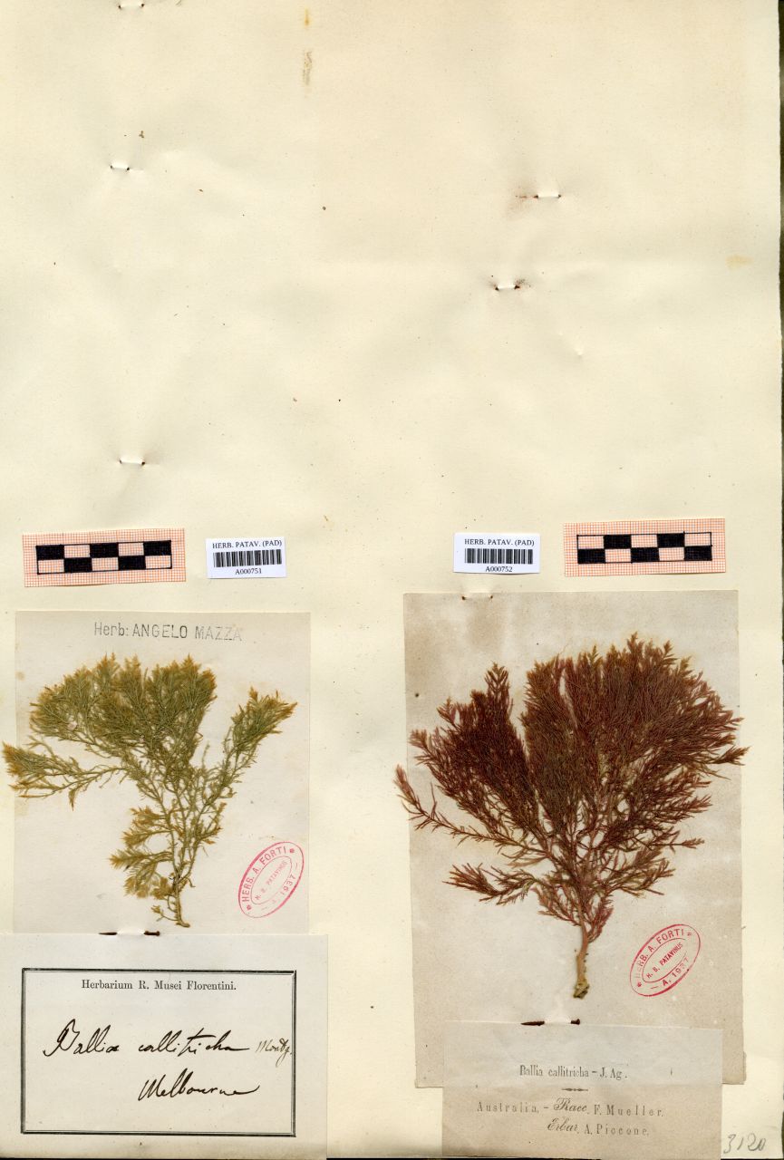 Ballia callitricha Montg. - erbario, Collezione Achille Forti, Collezione Achille Forti