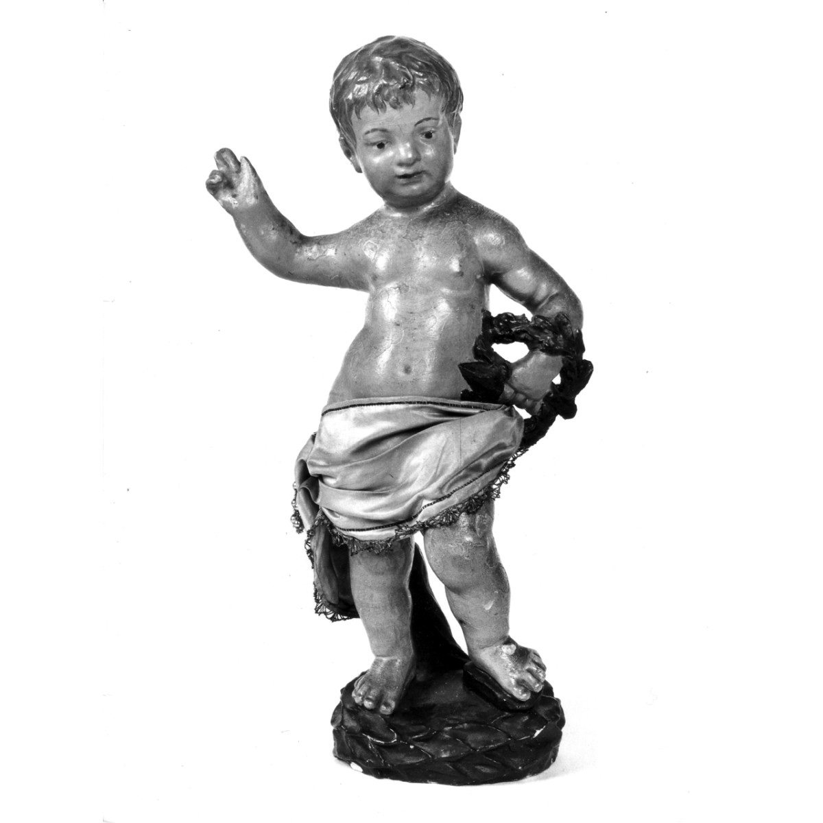 Soggetti sacri. Personaggi: Gesù Bambino in piedi con la mano destra alzata in atto di benedizione. Abbigliamento: perizoma di raso rosa. Simboli della Passione