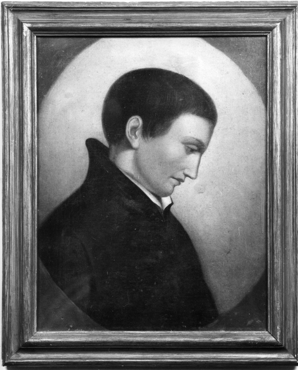 Cornice lignea intagliata e dorata.. Personaggi: San Stanislao Kostka. Abbigliamento: religioso