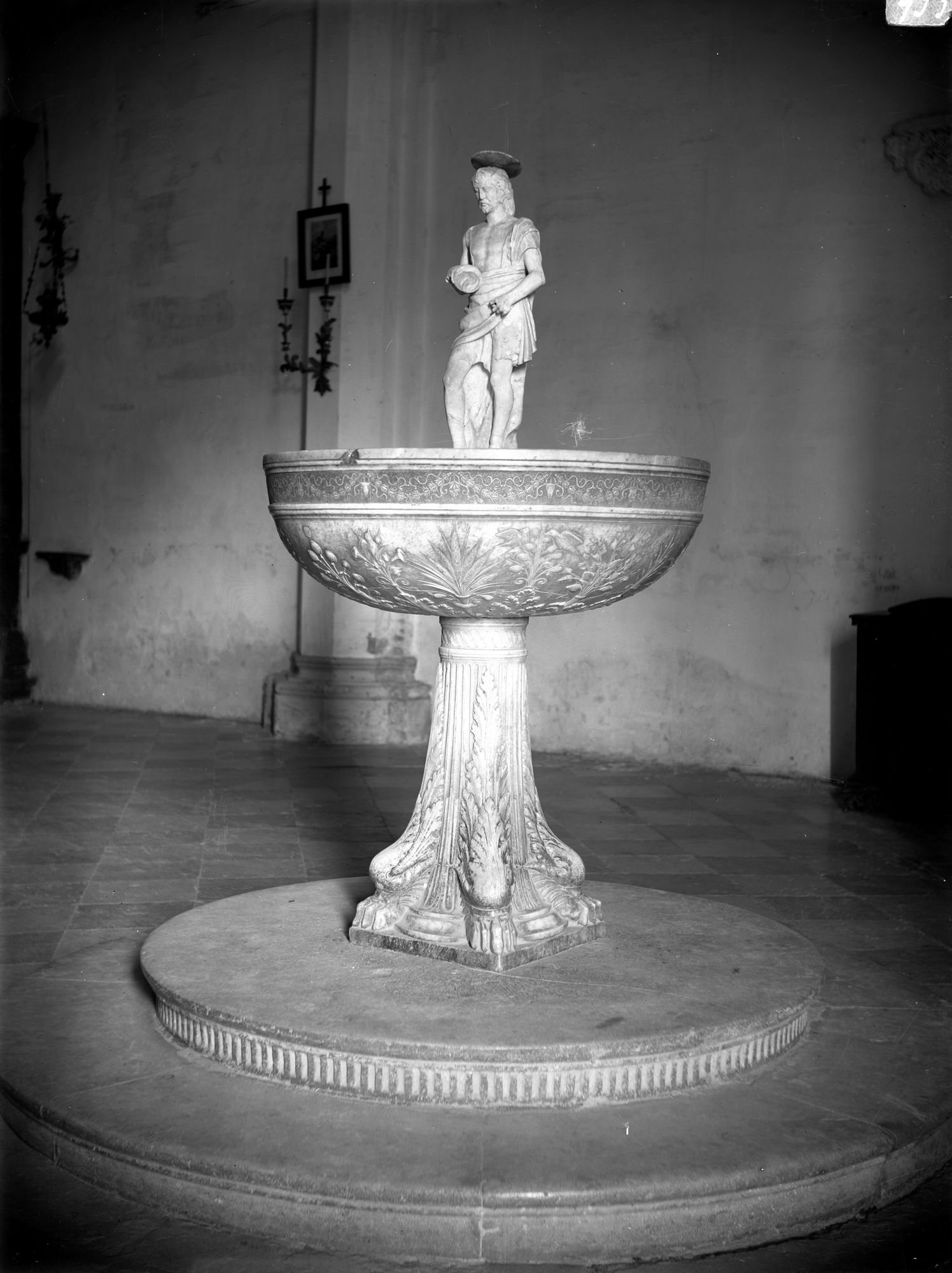 Chiesa di Monteortone. Acquasantiera del 1600. (negativo)