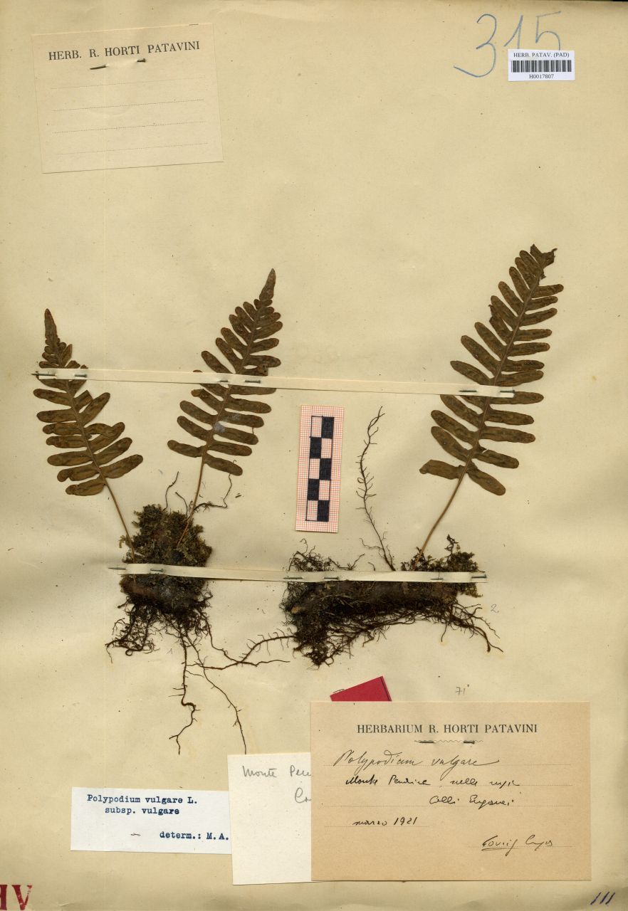 Polypodium vulgare L. - erbario, Erbario delle Venezie, Erbario delle Venezie