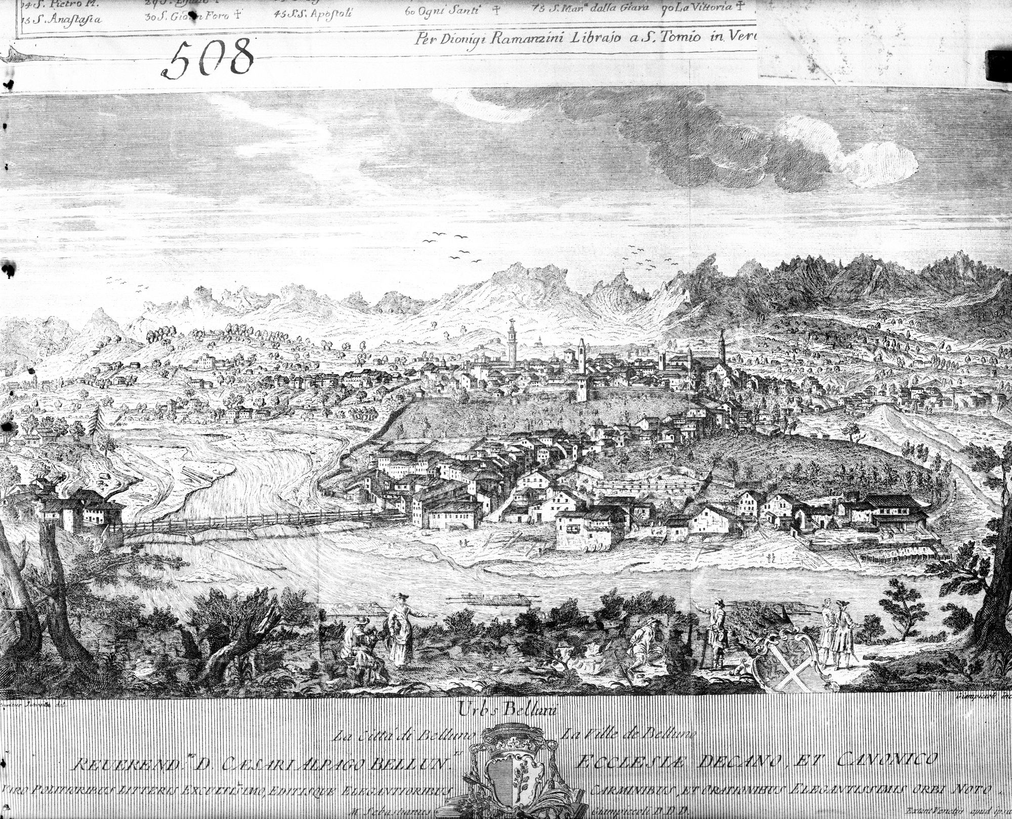 Monaco Francesco; Monaco Francesco; Monaco Francesco; Monaco Francesco, Veduta di Belluno a volo d'uccello (stampa)