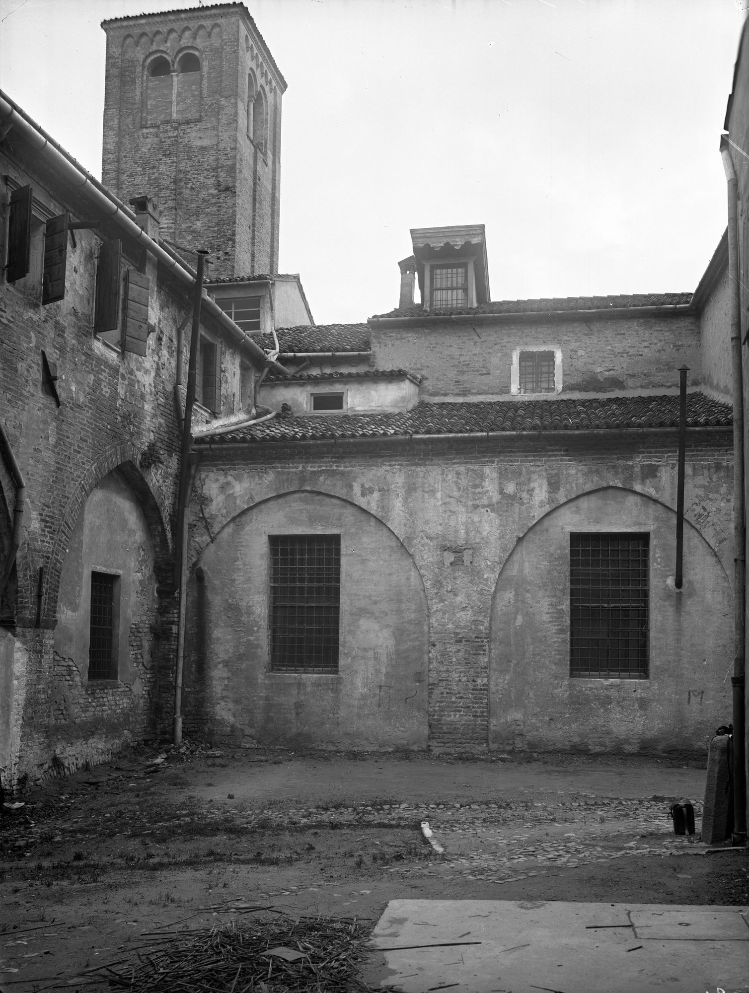 Chiesa dei Servi. Le arcate esterne murate della vecchia sagrestia e del locale adibito a teatrino. (negativo)