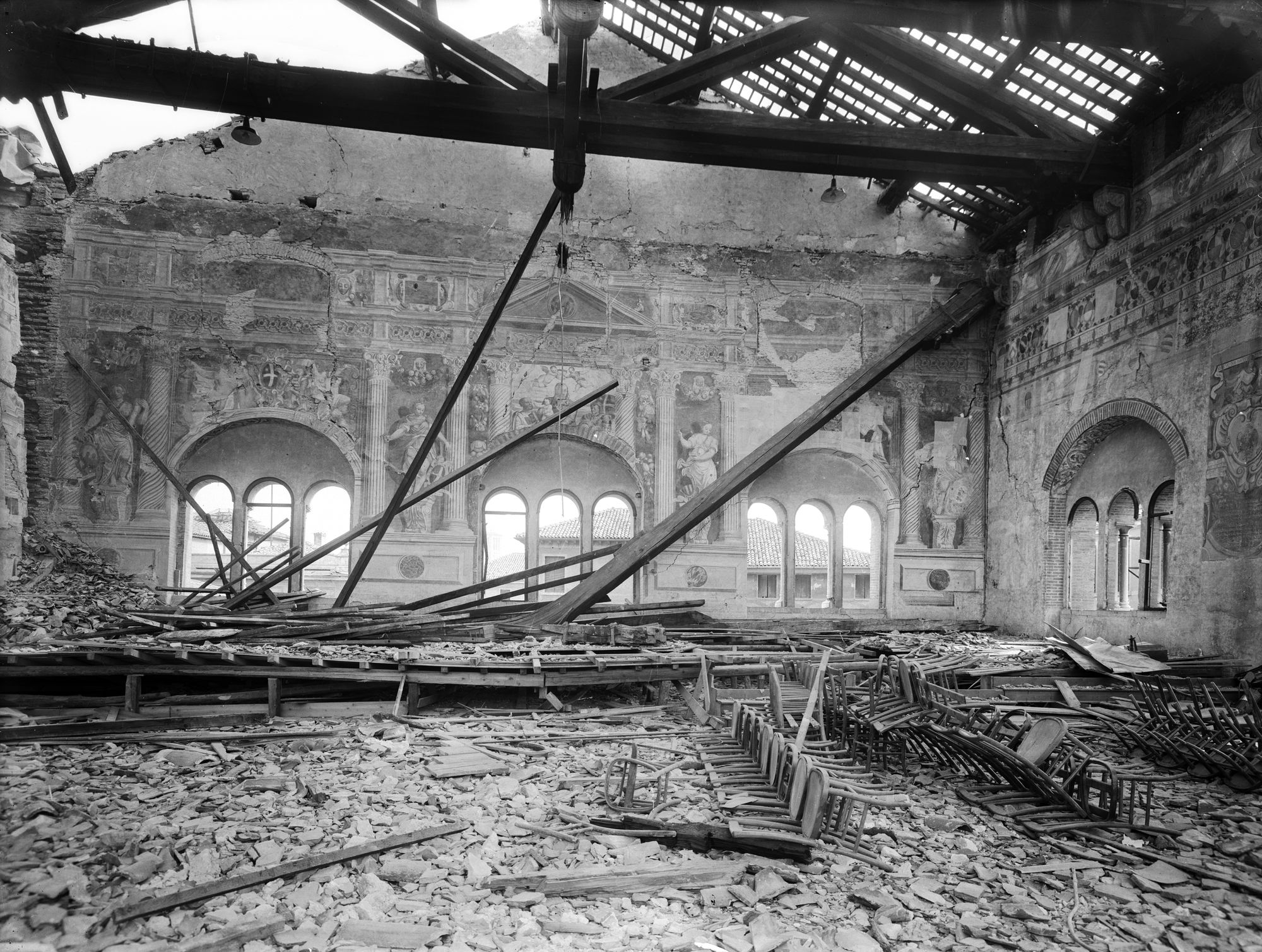 Palazzo dei Trecento. Interno del salone dopo il bombardamento., Palazzo dei Trecento. Interno del salone dopo il bombardamento