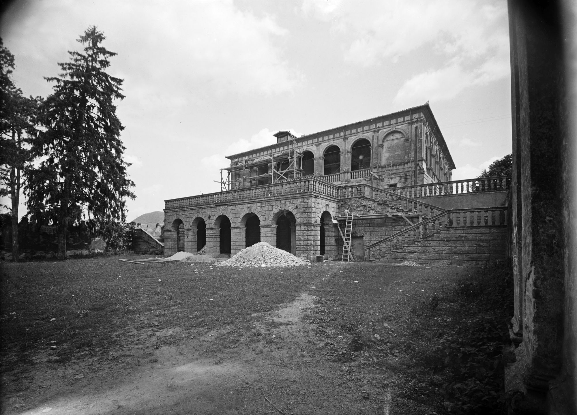 Villa dei Vescovi. La facciata durante i lavori di ripristino. (negativo)