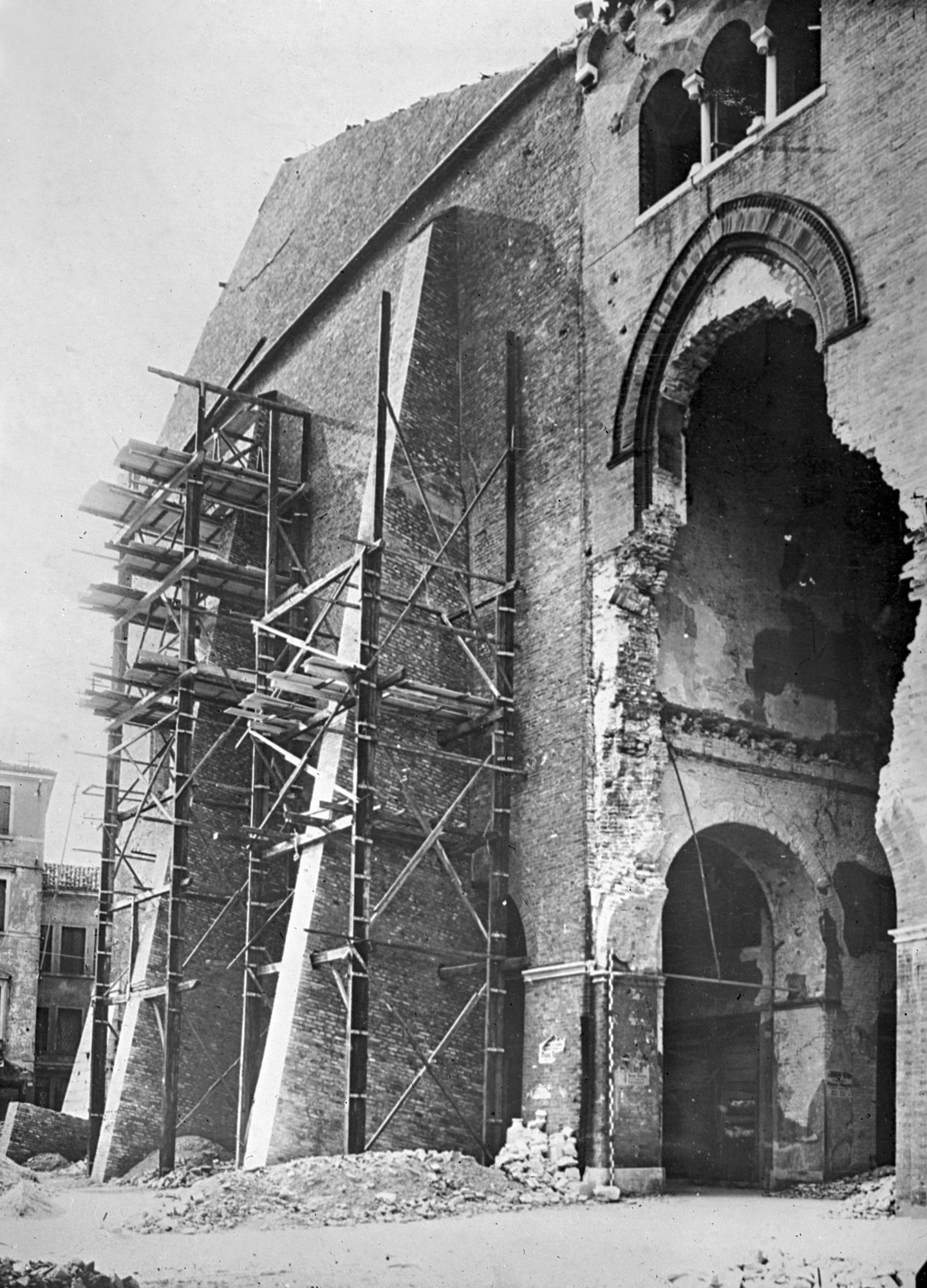Palazzo dei Trecento. Il fianco dopo il bombardamento., Palazzo dei Trecento. Il fianco dopo il bombardamento