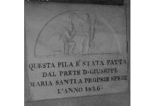 Su di una coppia di mensole ad acanti che sorreggono una mensa, è la lapide rettangolare. Al centro è il Cristo risorto a bassorilievo, con la destra indica l'elenco dei caduti, con la sinistra addita ad un soldato morto, sorretto da tre figure femminili piangenti, contro un fondale montuoso. Coronamento con volute sormontato da una fiammella.. Personaggi: Cristo. Abbigliamento: (Cristo) veste; (soldato) divisa; elmetto; (donne) vesti; veli. Figure femminili: tre donne. Paesaggi. Figure maschili: soldato