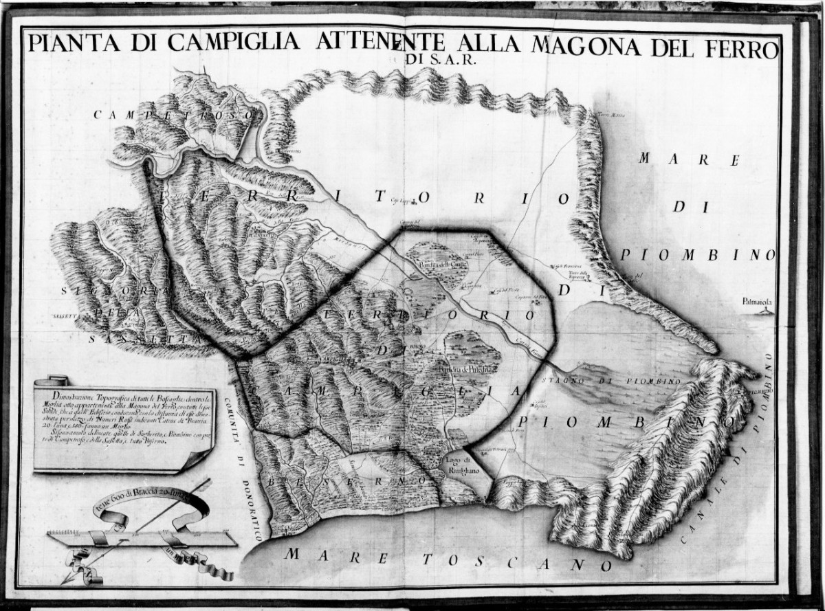 Pianta di Campiglia attenente alla Magona del ferro, carta geografica del territorio di Campiglia (cabreo)