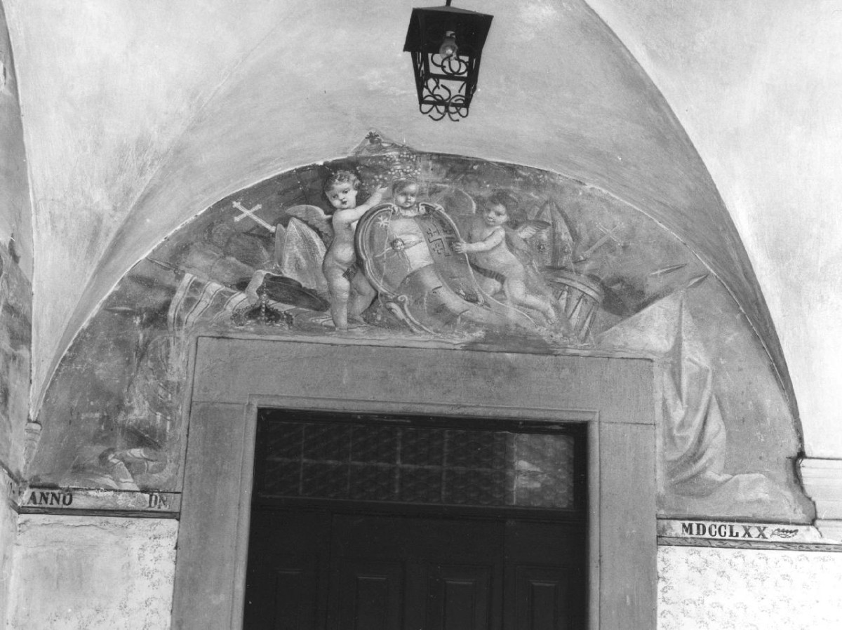Figure: angioletti. Simboli: corona reale; stendardi; armi; croce; triregno; mitria