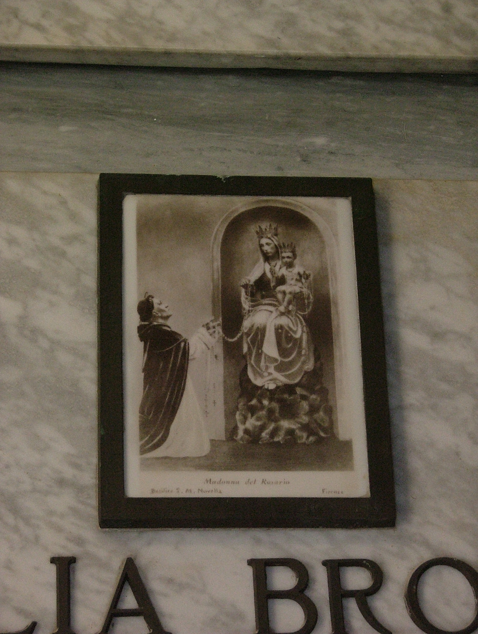 Cornice lineare in legno.. Personaggi: Madonna; Gesù Bambino; frate