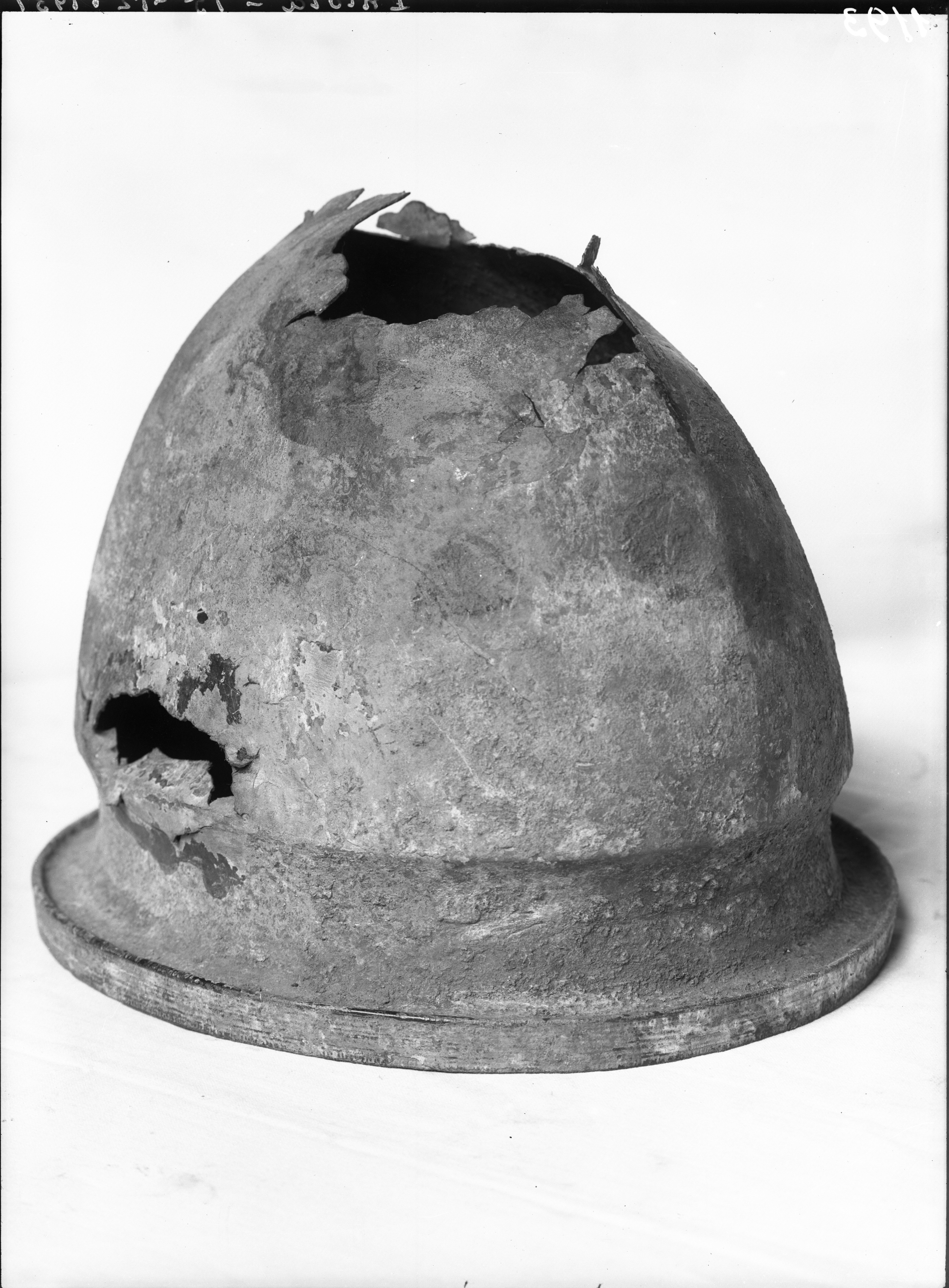 Imola, frazione Linaro, podere Morine di Sotto, rinvenimento 1931, Elmo. Gambali. Calderone